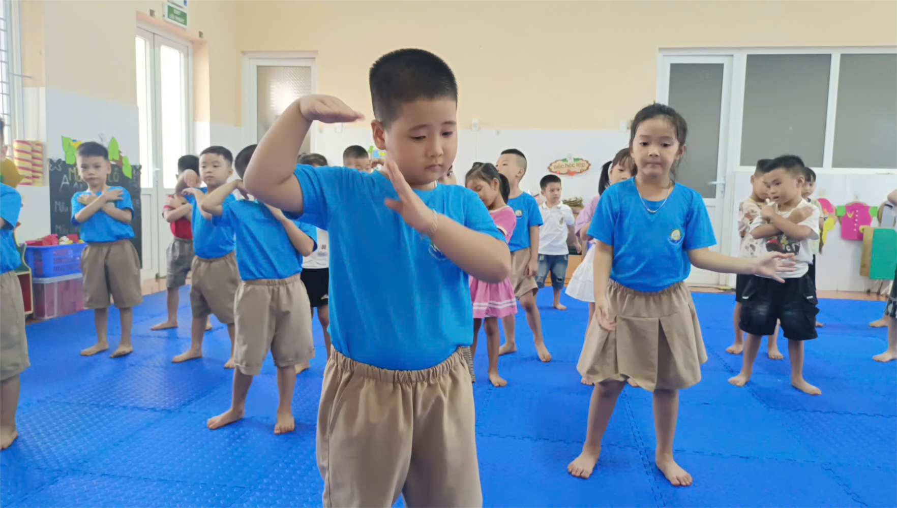 Thông qua hoạt động thể dục, trẻ không chỉ được phát triển thể chất toàn diện, tăng cường sức đề kháng mà còn rèn luyện tính kỷ luật, tinh thần đoàn kết và sự tự tin khi cùng bạn bè tham gia vận động.