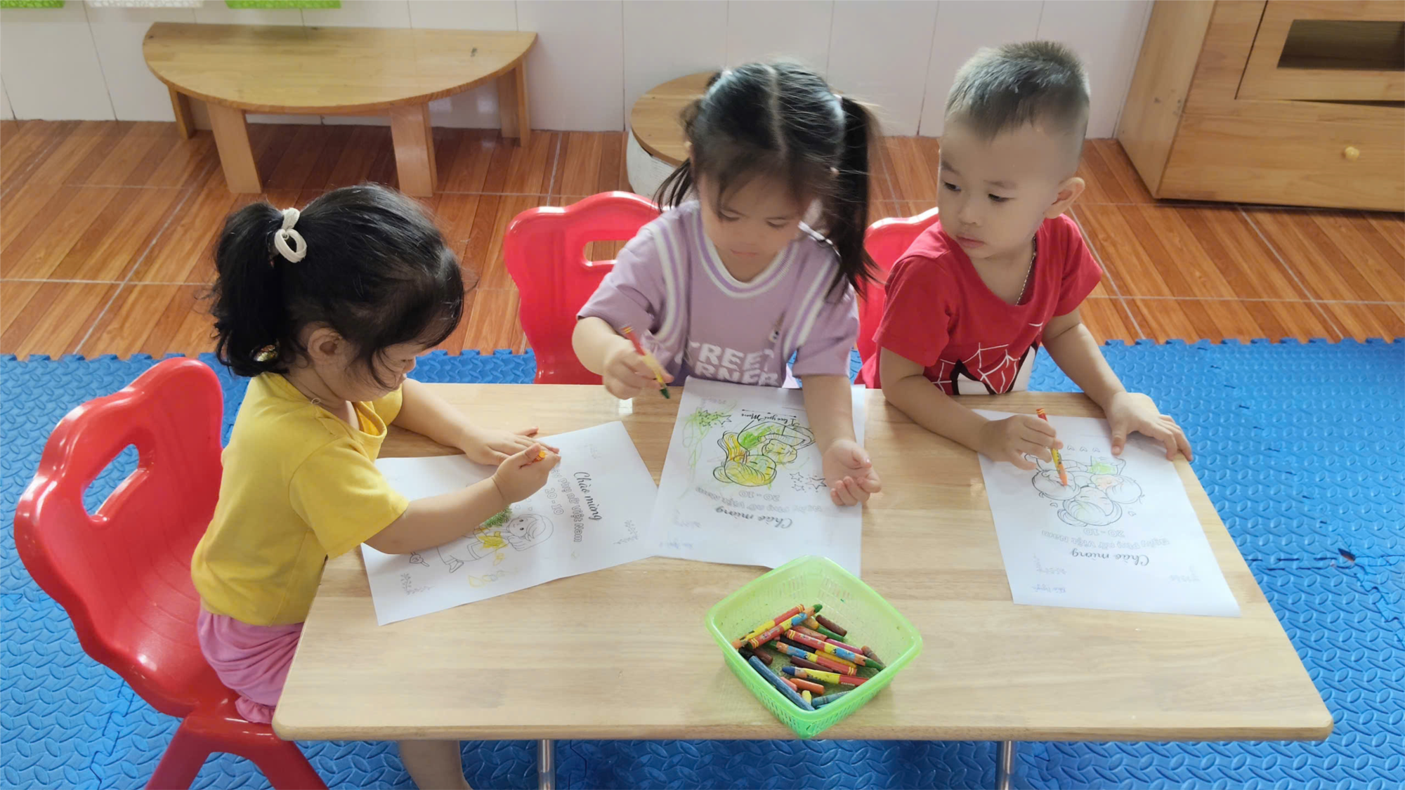 Qua buổi học các bé còn được cô giáo chia sẻ về ý nghĩa đặc biệt của ngày Phụ nữ Việt Nam 20/10. Qua đó, các con không chỉ phát triển kỹ năng tô màu khéo léo mà còn hiểu thêm về tình yêu thương, sự quan tâm dành cho bà và mẹ.
