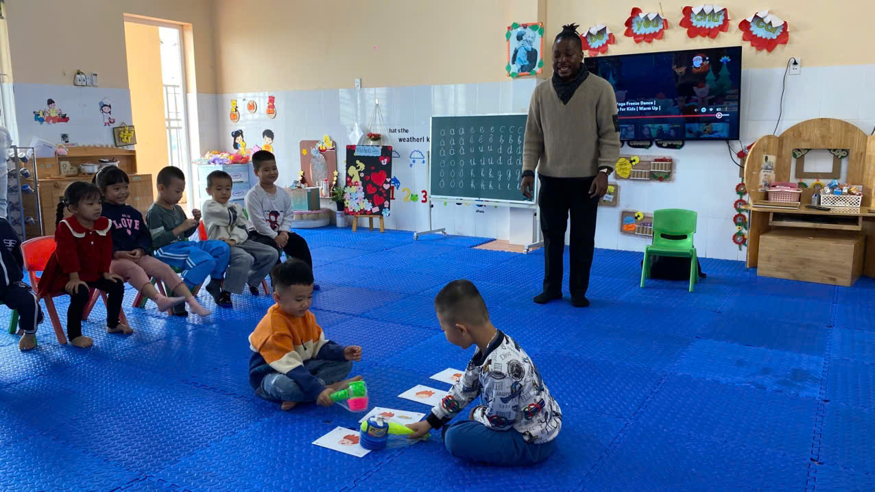 Trong giờ học, các bé được tiếp cận Tiếng Anh thông qua các trò chơi vận động, bài hát, hình ảnh và hoạt động giao tiếp đơn giản. Dưới sự hướng dẫn của giáo viên, trẻ mạnh dạn tham gia, hứng thú lắng nghe, phát âm và phản xạ theo các yêu cầu. Không khí lớp học diễn ra vui tươi, thân thiện, giúp trẻ tiếp thu kiến thức một cách tự nhiên.