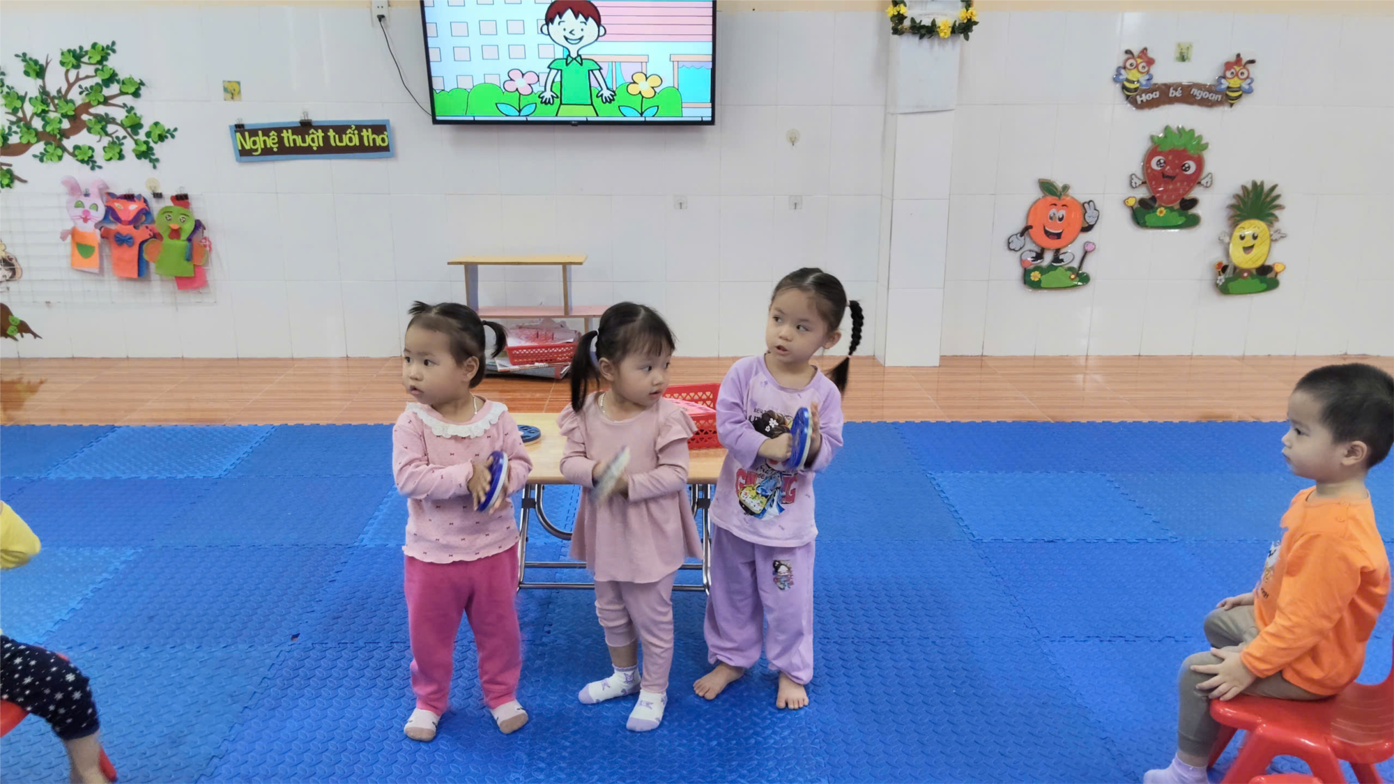 Dưới đây là một số hình ảnh của trẻ nhà trẻ 25-36 tháng trường mầm non Lam Cốt trong giờ âm nhạc