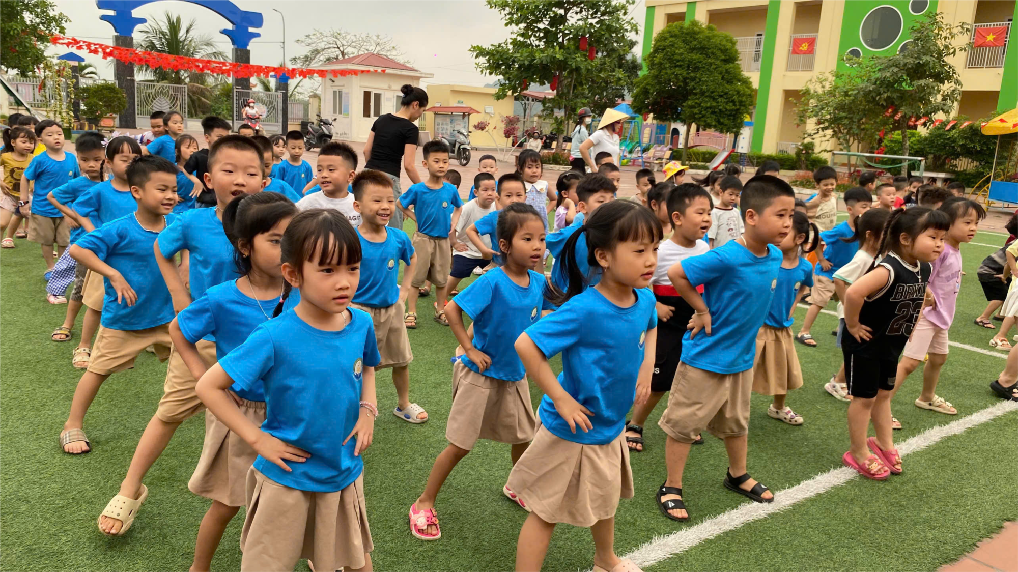 Trong không khí rộn ràng, các em cùng nhau tập luyện nghiêm túc, động tác nhịp nhàng, thể hiện sự đoàn kết và kỷ luật. Tiếng cười nói vui vẻ hòa cùng nhịp vận động đã tạo nên một khởi đầu ngày mới đầy hứng khởi.