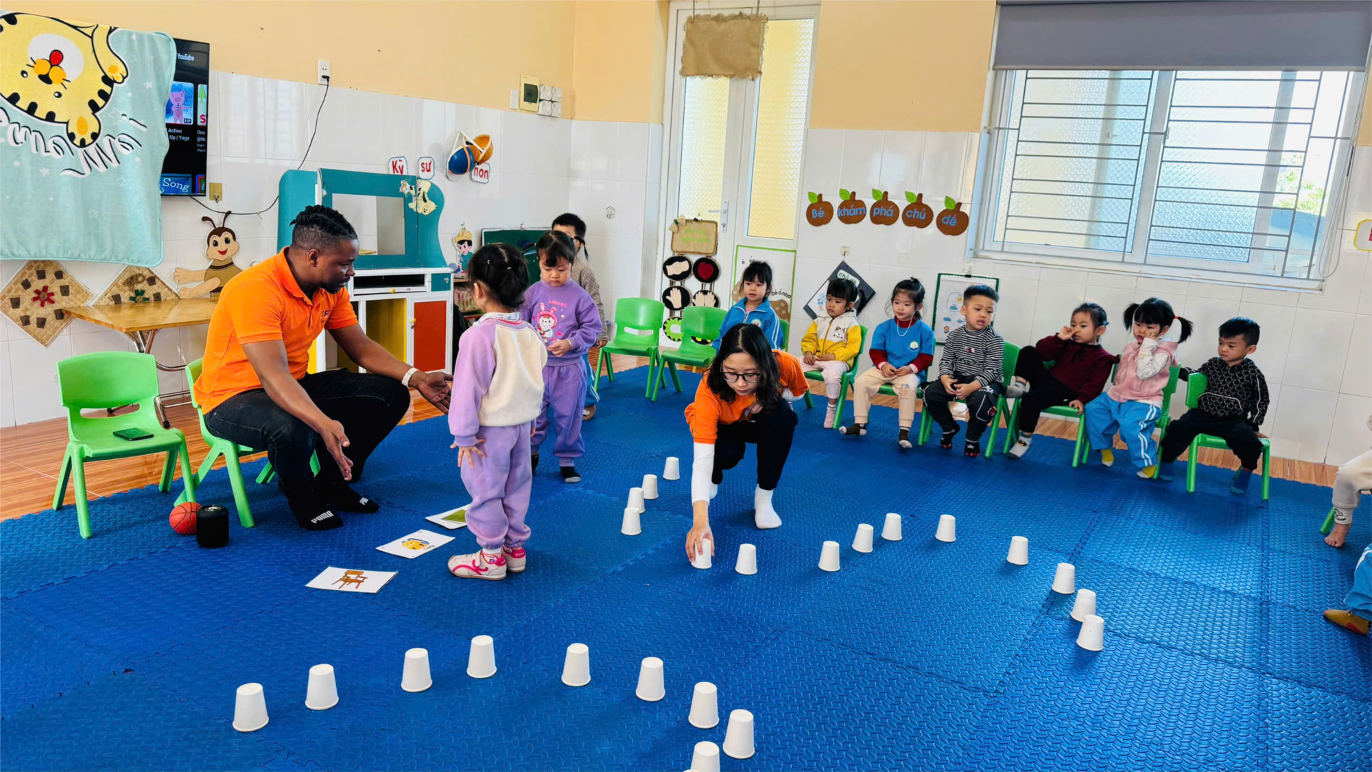 Trong thời đại hiện nay, Tiếng Anh đã trở thành một cầu nối không thể thiếu cho học sinh Việt Nam để các em có thể thâm nhập kho tàng kiến thức của nhân loại, du học trong và ngoài nước và mang về những kiến thức phục vụ đất nước mình. Có thể nhận thấy, nhu cầu học Tiếng Anh của các em là rất lớn. Việc trang bị cho các học sinh Việt Nam tiếng Anh hội nhập để có thể bắt kịp và hòa nhập với các nước trong khu vực và trên thế giới trở nên cần thiết hơn bao giờ hết. Trường Mn An Tiến đã triển khai năm học thứ 2 kết hợp với trung tâm tiếng anh CET. Các bạn nhỏ lớp 3 tuổi C1 rất hứng thú với giờ học tiếng anh. Sau đây là 1 số hình ảnh: