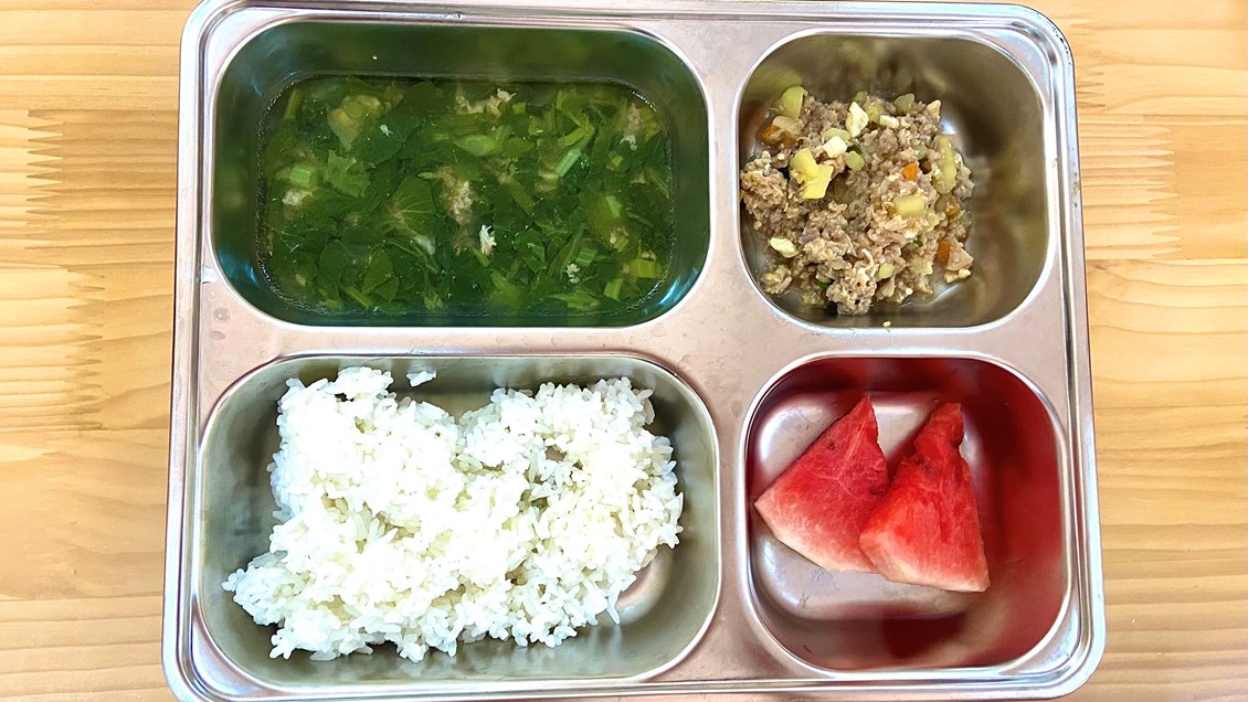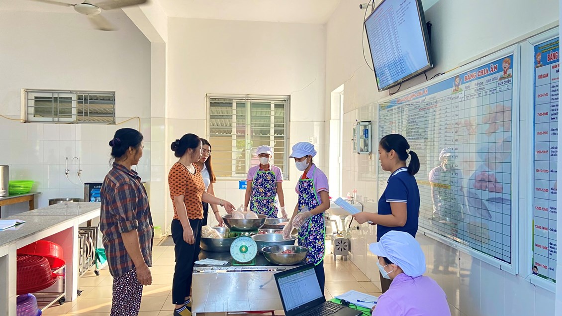 Để trẻ có bữa ăn hợp lí, đảm bảo vệ sinh an toàn thực phẩm và đầy đủ chất dinh dưỡng, ngay từ đầu năm học, nhà trường đã kí hợp đồng với nhà cung cấp thực phẩm sạch, khi giao nhận thực phẩm có sự giám sát của BGH, giáo viên, phụ huynh, bên giao và bên nhận. Bên cạnh đó, trẻ được ăn rau sạch tại vườn trường, hoa quả theo mùa, thực đơn được xây dựng phong phú, đủ chất, đủ lượng, phù hợp độ tuổi, nhờ đó, trẻ rất vui vẻ, hứng thú trong các bữa ăn tại trường.