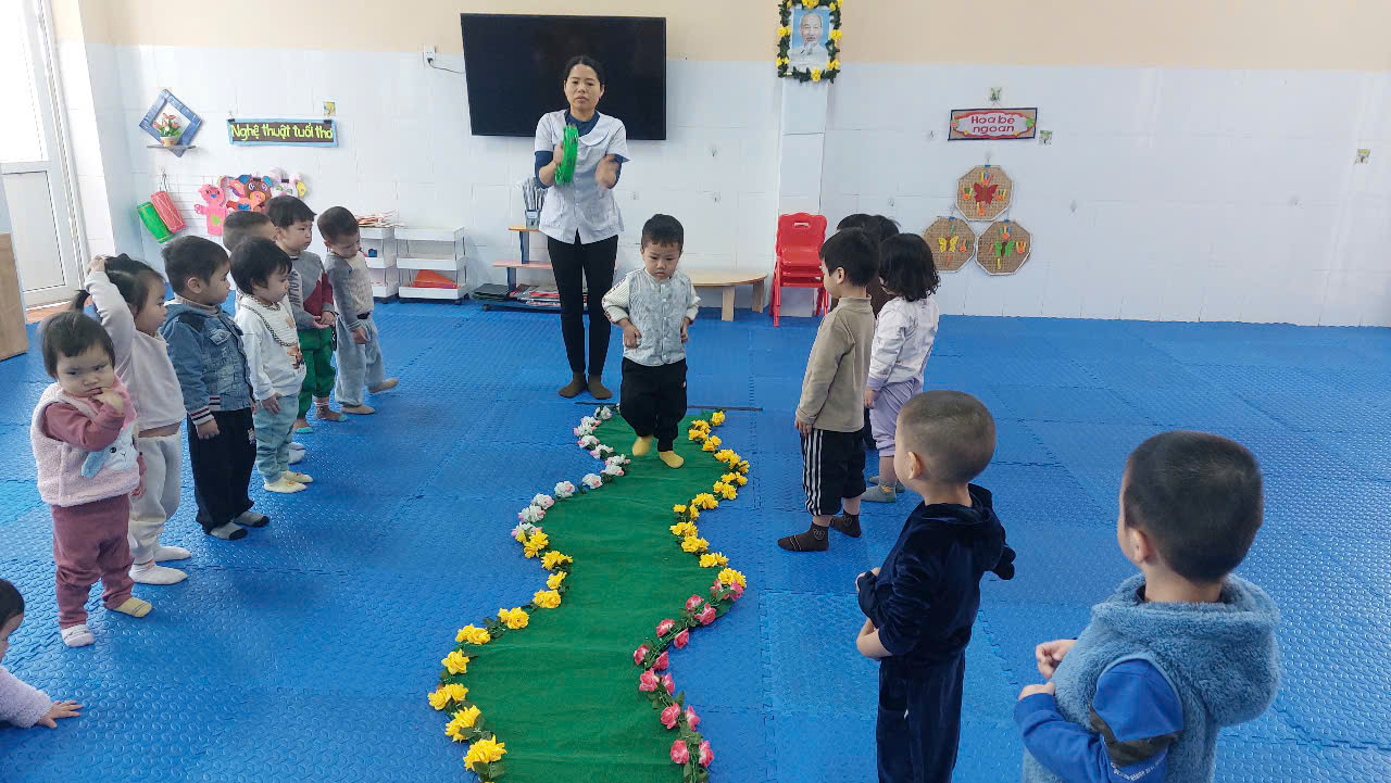 Khi tham gia hoạt động, trẻ sẽ học cách giữ thăng bằng, điều chỉnh bước chân để đi theo con đường ngoằn ngoèo mà không vượt ra ngoài ranh giới. Điều này giúp trẻ phát triển khả năng phối hợp giữa tay, mắt và chân, đồng thời tạo cơ hội để trẻ rèn luyện sức mạnh và tự tin trong vận động. Hoạt động còn mang tính giáo dục cao khi trẻ được làm quen với khái niệm không gian và định hướng.