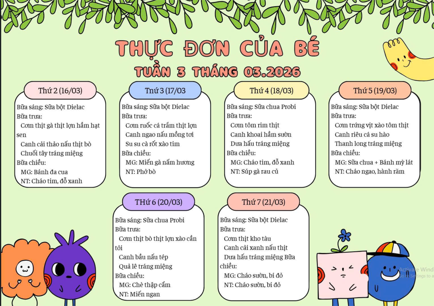 💖 Kính mời quý phụ huynh cùng theo dõi thực đơn của bé trong tuần để phối hợp chăm sóc dinh dưỡng cho trẻ tại gia đình.