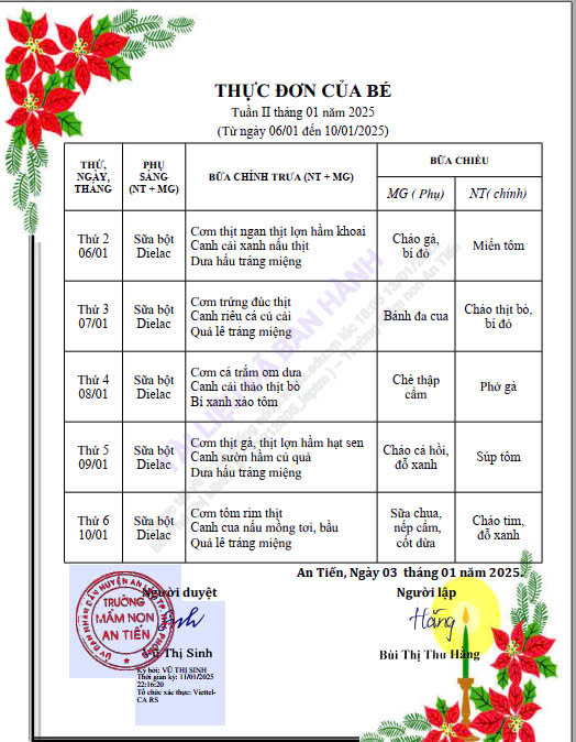 Các con ở giai đoạn mầm non cần tiêu hao rất nhiều năng lượng và phát triển về mặt thể chất. Do đó, BGH trường MN An Tiến luôn cân nhắc kỹ trong việc lựa chọn thực phẩm đa dạng cho các con để đảm bảo cung cấp dinh dưỡng tốt nhất cho bé.