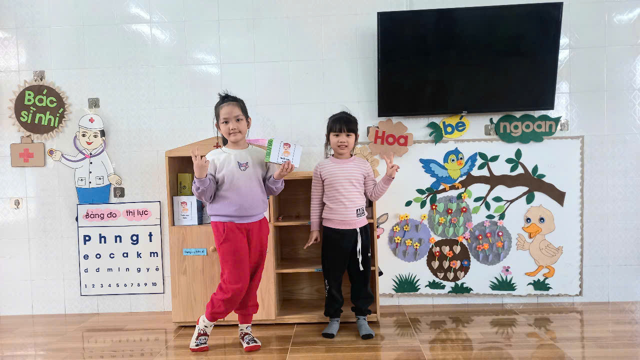 Ngoài ra các bé còn cùng cô giáo trang trí lớp học, sảnh, cầu thang,.. chuẩn bị đón Tết