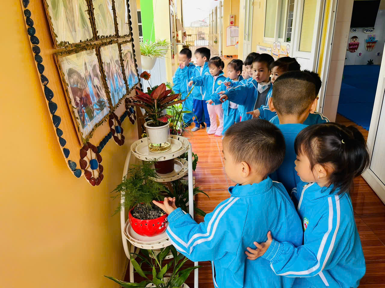 Trong quá trình tham gia, các bé rất hứng thú khi được tự tay chăm sóc từng chậu cây nhỏ. Hoạt động giúp trẻ phát triển khả năng quan sát, rèn kỹ năng vận động tinh, sự khéo léo và tính kiên trì. Bên cạnh đó, trẻ học được cách chờ đến lượt, biết hợp tác cùng bạn và có ý thức giữ gìn môi trường lớp học luôn xanh - sạch - đẹp.