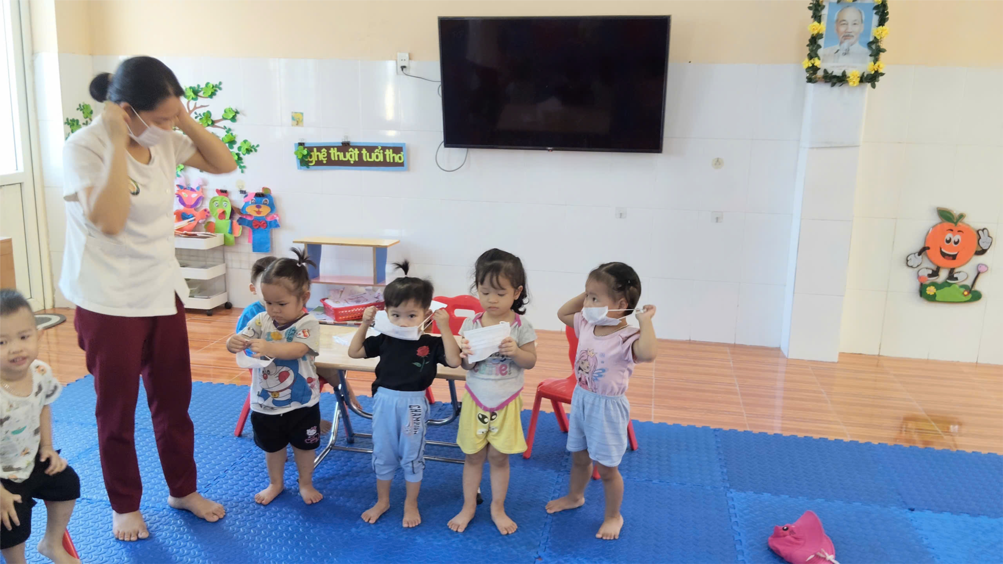 Hoạt động hướng dẫn trẻ đeo khẩu trang đúng cách đã giúp các bé lớp NTD1 không chỉ rèn luyện kỹ năng tự phục vụ, mà còn hình thành ý thức giữ gìn vệ sinh cá nhân, tinh thần trách nhiệm với bản thân và mọi người xung quanh.