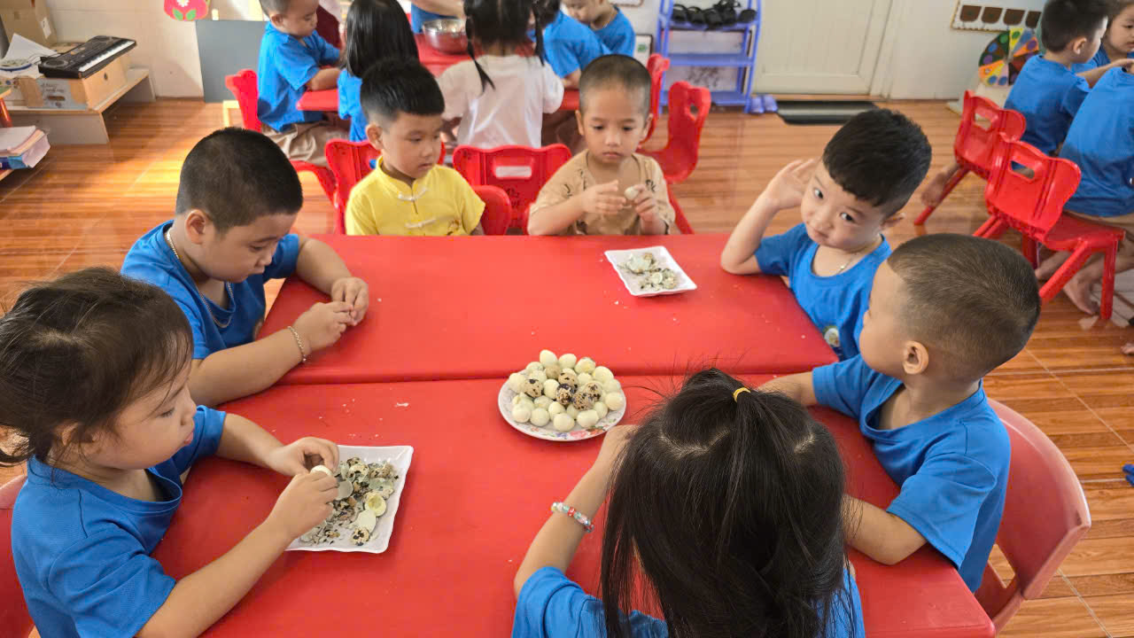Với tiêu chí “Học mà chơi, chơi mà học - Học đi đôi với thực tiễn”Hoạt động “Bóc trứng cút” là một hoạt động thú vị của các bạn nhỏ, tuy đơn giản nhưng mang lại sự trải nghiệm vô cùng to lớn, nó giúp trẻ rèn luyện sự khéo léo của những ngón tay, sự tỉ mỉ, rèn luyện tính kiên trì cho trẻ. Thông qua hoạt động này, đã rèn cho các con sự khéo léo từ đôi bàn tay và đặc biệt các con có thể giúp bố mẹ trong việc nội trợ rồi đấy,Sau đây là 1 số hình ảnh của hoạt động bóc trứng chim cút của các bé lớp 4B2 Trường mầm non An Tiến.