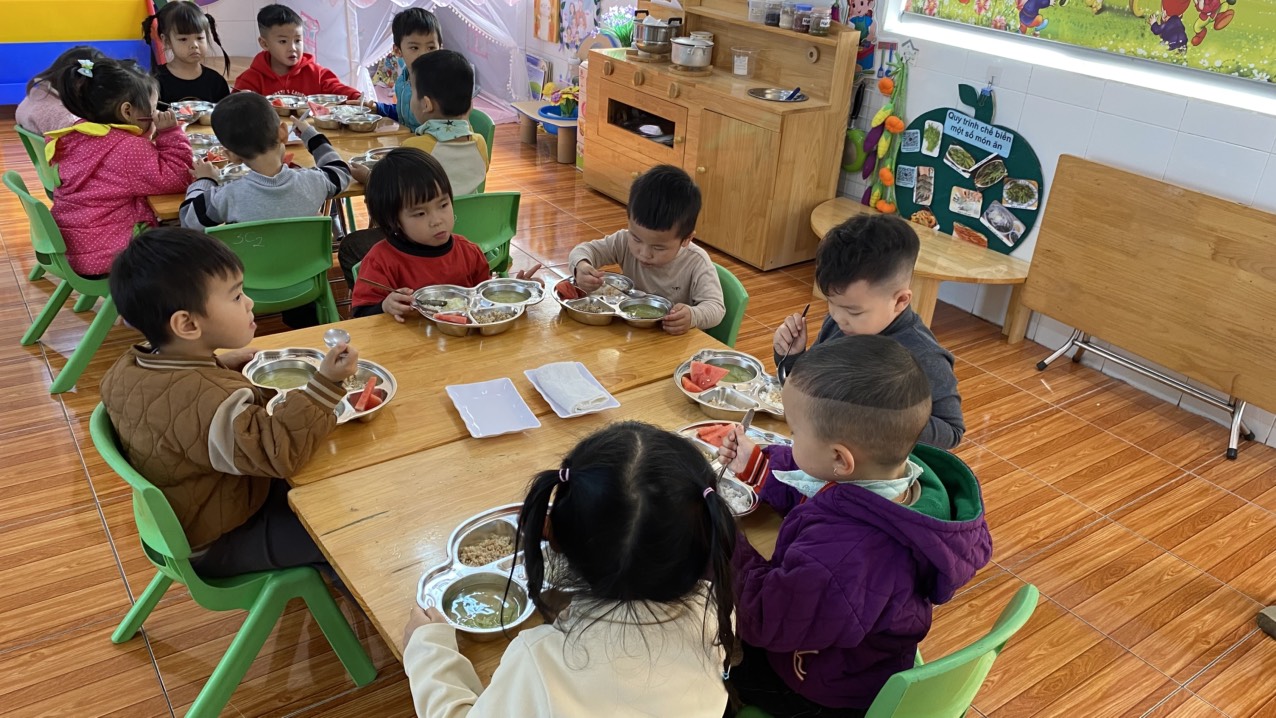 Năm học: 2024-2025 trường mầm non An Tiến đầu tư trang bị thêm khay để phục vụ trẻ ăn cơm, nhằm rèn kỹ năng: tự phục vụ cho trẻ trong giờ ăn trẻ biết tự lấy thức ăn, canh, hoa quả tráng miệng ở khay. Được thay đổi ăn khay các con rất thích, vui, ăn ngon miệng ăn hết xuất.