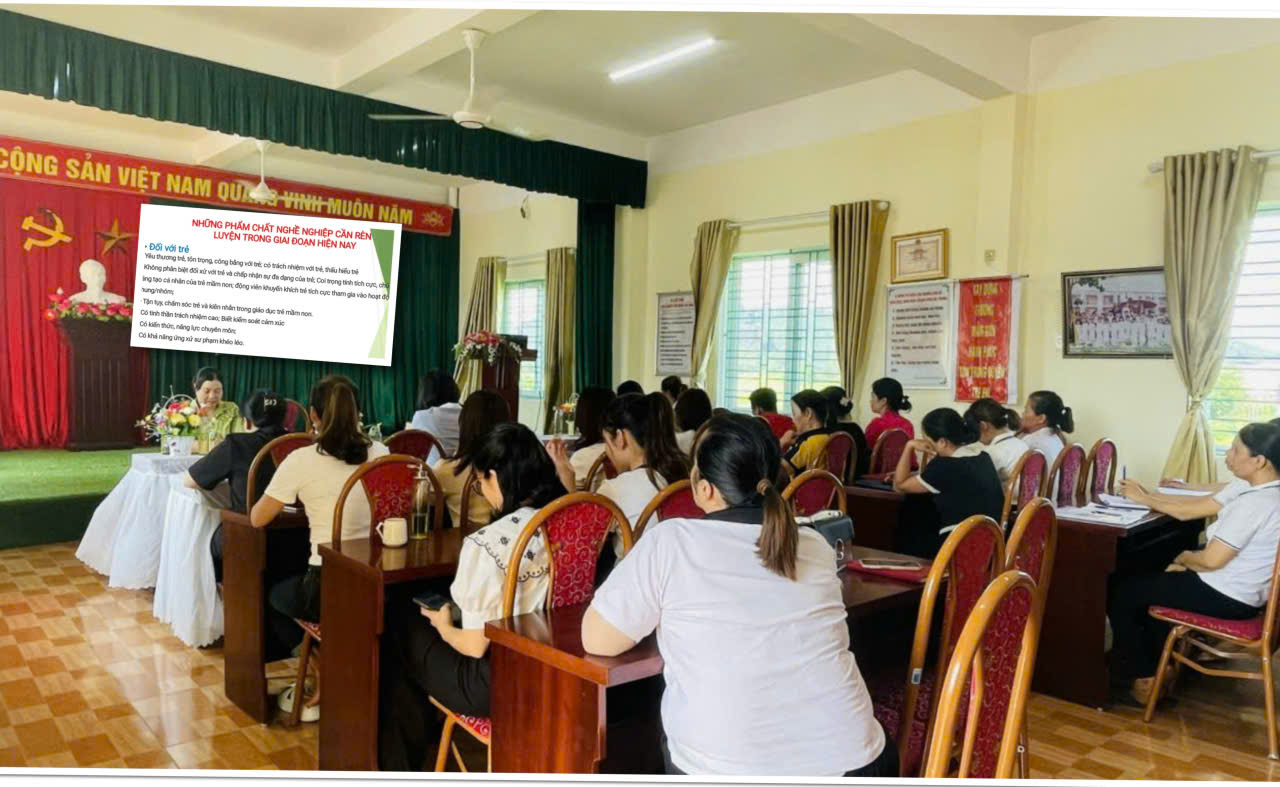 Đồng thời đ/c đã tiến hành bồi dưỡng cho cán bộ giáo viên nhân viên các nội dung: Phẩm chất đạo đức người GVMN trong giai đoạn hiện nay.