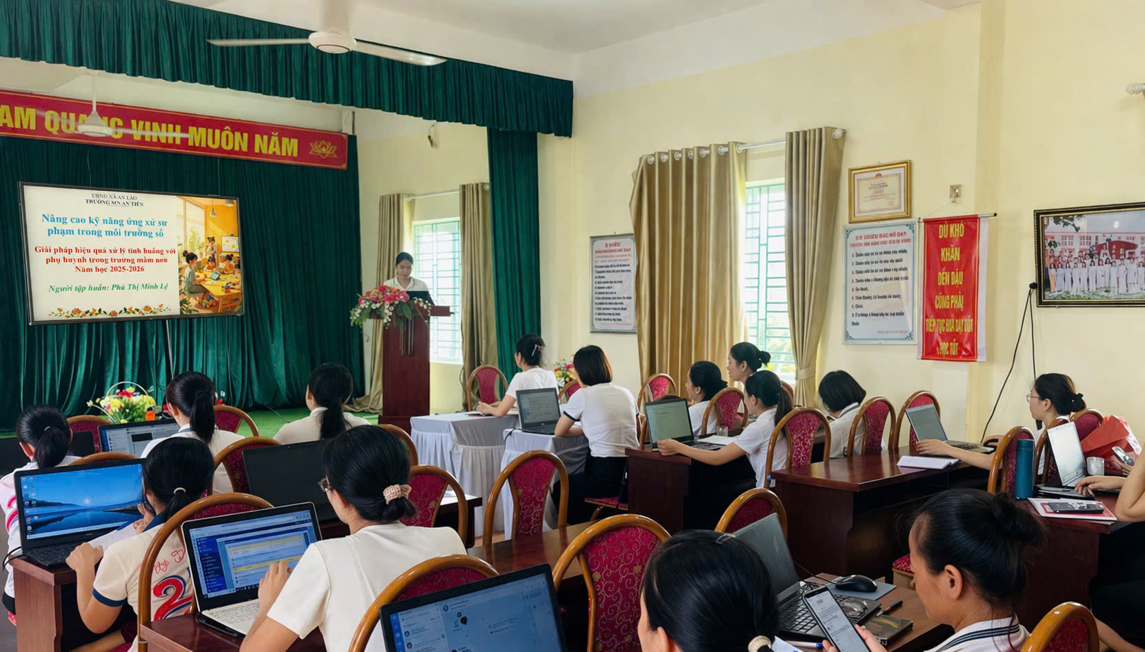 Nhà trường đã thường xuyên tổ chức các đợt tập huấn nhằm nâng cao nhận thức cho CBGVNV về vai trò của ứng xử sư phạm trong môi trường số.Trang bị kỹ năng xử lý các tình huống phụ huynh phản ánh trên nhóm lớp. Xây dựng hình ảnh người giáo viên mầm non chuẩn mực – chuyên nghiệp – thân thiện trong thời đại 4.0.