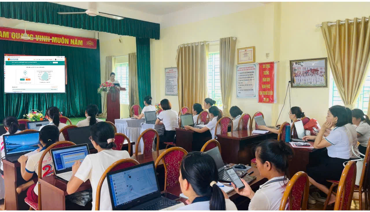 Tại buổi tập huấn, đồng chí Phú Thị Minh Lệ - Phó hiệu trưởng nhà trường đã hướng dẫn các đồng chí giáo viên tập huấn cách đánh giá chuẩn nghề nghiệp giáo viên theo thông tư mới Thông tư 26/2018/TT-BGDĐT trên phần mềm TEMIS một cách chi tiết và hiệu quả theo chu kỳ đến toàn thể cán bộ, giáo viên trong nhà trường. Thông qua hình thức trao đổi, thảo luận và thực hành, cán bộ, giáo viên trong trường đã nắm vững được cách đánh giá chuẩn Nghề nghiệp trên phần mềm TEMIS cụ thể như: Cách đăng nhập, cách đánh giá chuẩn nghề nghiệp, sưu tập minh chứng và sử dụng minh chứng nhiều lần, cách thêm minh chứng, cách lưu và gửi đánh giá.