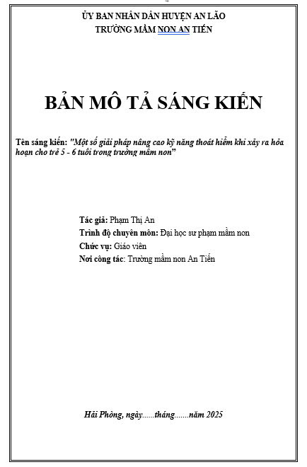 + Giải pháp sáng tạo dạy trẻ 5-6 tuổi kĩ năng thoát hiểm khi có hỏa hoạn nhằm phát triển tình cảm và kĩ năng cho trẻ tại lớp 5 tuổi A trường mầm non Sơn Ca, thị trấn Cát Bà