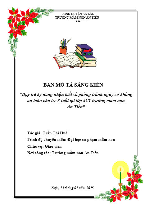 1. Tên sáng kiến: “Dạy trẻ kỹ năng nhận biết và phòng tránh nguy cơ không an toàn cho trẻ 3 tuổi tại lớp 3C1 trường mầm non An Tiến "