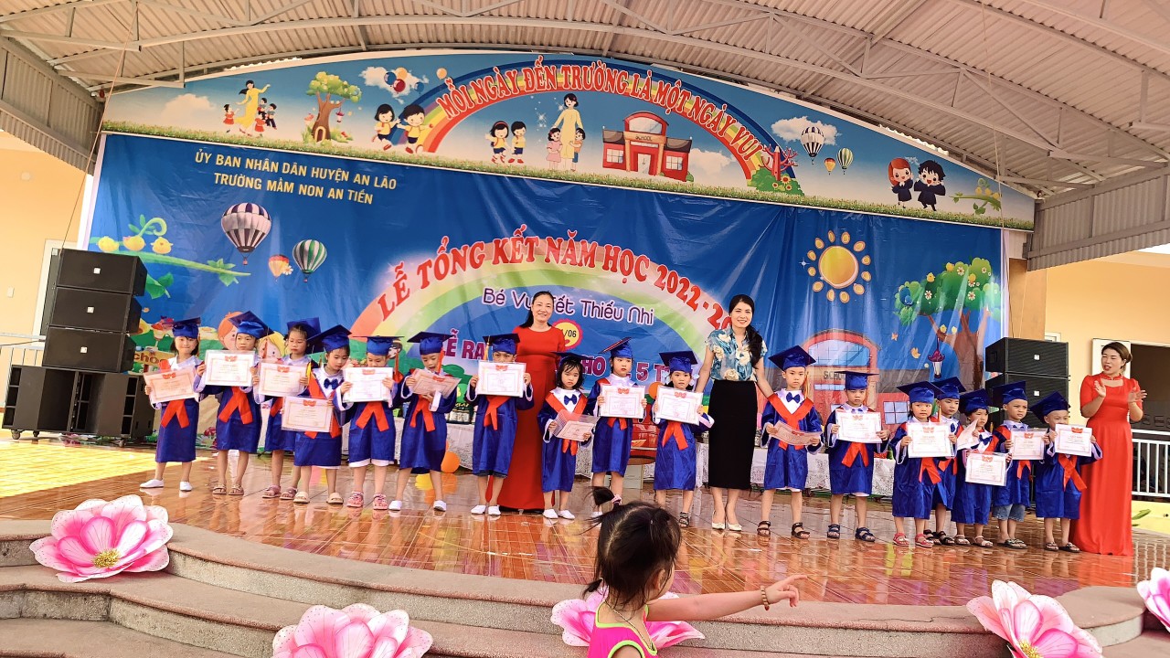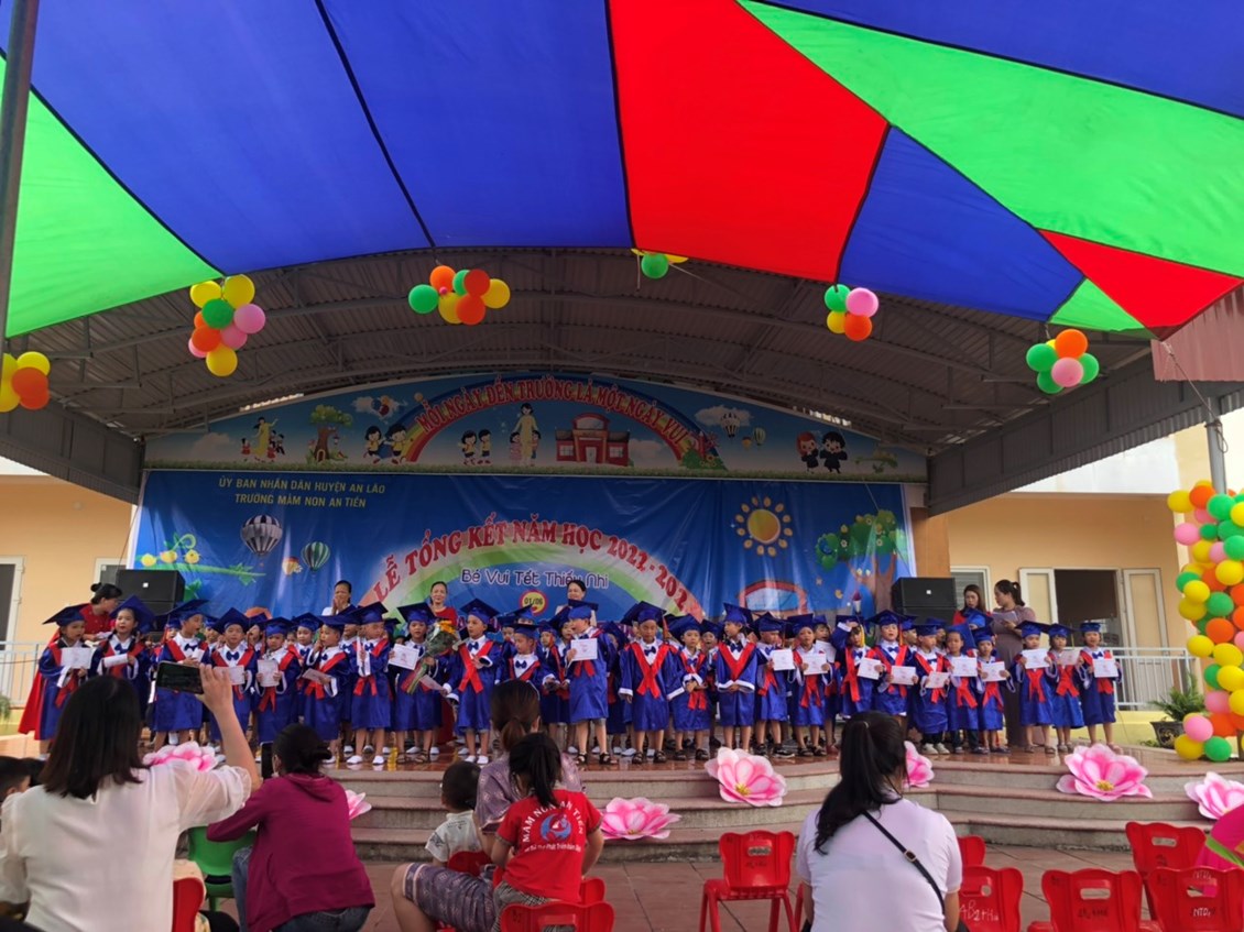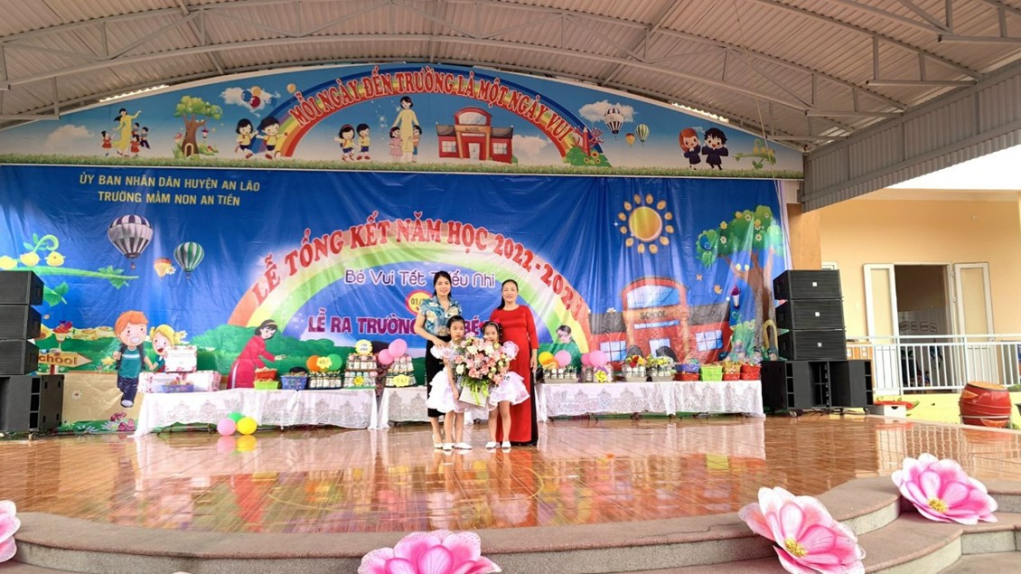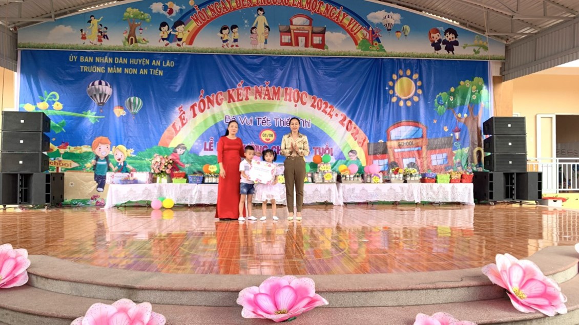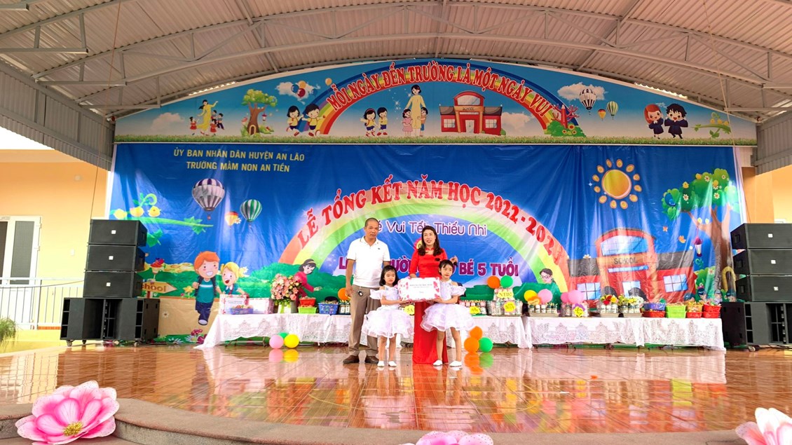 Về chung vui cùng các bé, quý vị đại biểu tặng hoa và quà chúc mừng cô và trò trường MN An Tiến
