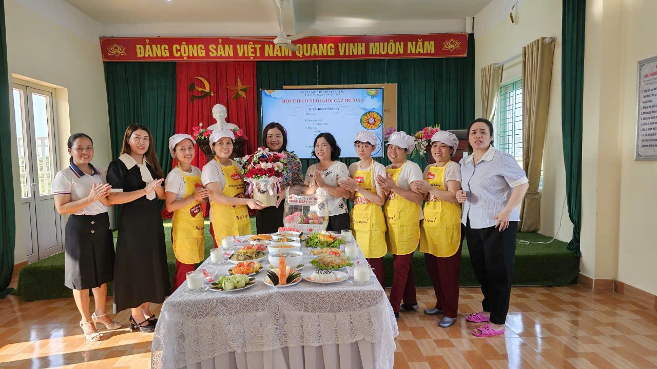 - Đầu năm học tổ nuôi đã tổ chức tập huấn chuyên môn nghiệp vụ cho đội ngũ nhân viên nuôi dưỡng. 100% nhân viên nuôi dưỡng có trình độ chuyên môn chính quy, tay nghề thành thạo, đồng đều. Đội ngũ nhân viên nuôi dưỡng nghiêm túc tham gia hội thi cô nuôi giỏi cấp trường, cấp huyện đề ra.
