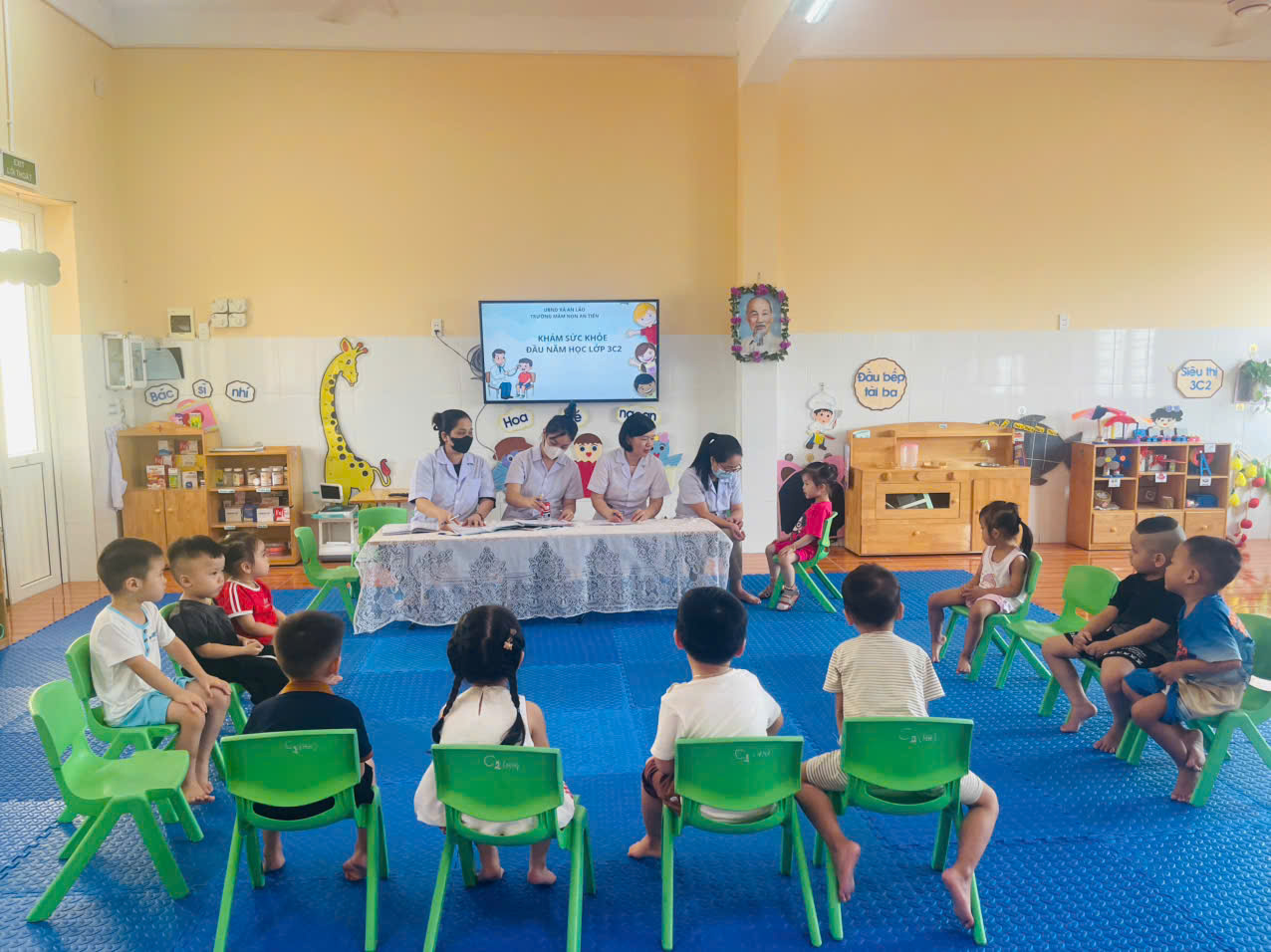 Khi đi học mầm non, trẻ sẽ tiếp xúc nhiều với các vật dụng công cộng, kết hợp với hệ miễn dịch của trẻ vẫn còn yếu, dễ mắc các bệnh truyền nhiễm là điều khó tránh khỏi. Bởi vậy mà không chỉ quan tâm tới chế độ dinh dưỡng của trẻ, nhà trường phối hợp với Trung tâm Y tế xã khám sức khỏe cho trẻ mầm non định kỳ 2 lần /năm. Chiều ngày 23/9/2025 Trường Mầm non An Tiến tổ chức khám sức khỏe đầu năm học cho các con .Các Cô Bác bên trạm y tế xã khám cho các bé rất ân cần và cẩn thận. Bé nào cũng vui vẻ, hợp tác và mong đến lượt mình được khám.