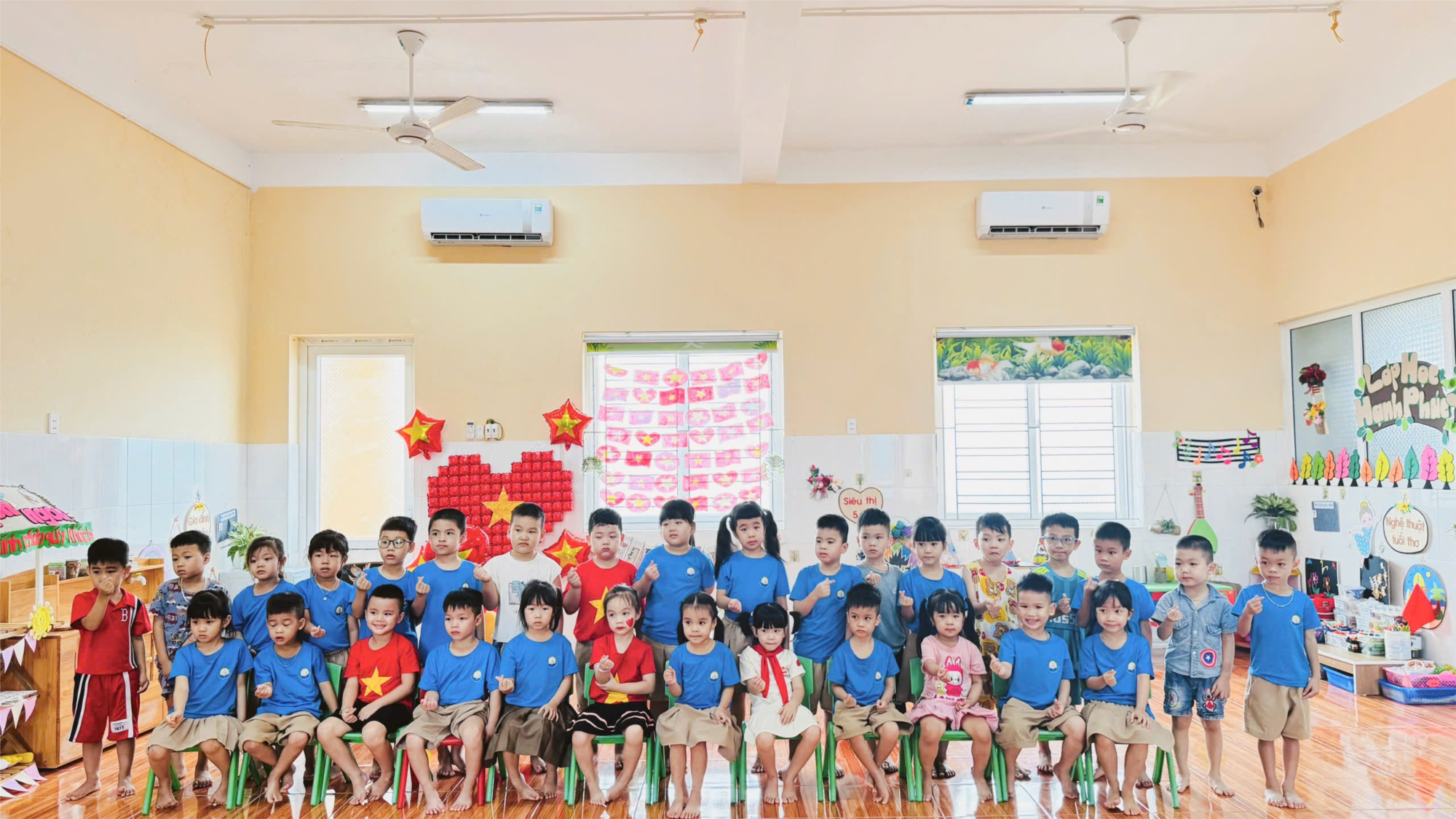 Hòa chung trong không khí tự hào, phấn khở của cả nước hướng tới kỷ niệm 80 năm Cách mạng Tháng 8 và Quốc khánh nước cộng hòa xã hội chủ nghĩa Việt Nam. Các bé lớp 5 tuổi A1 - trường mầm non An Tiến đã tổ chức các hoạt động ý nghĩa như tô màu, cắt dán làm cờ dây, trang trí bóng bay và cờ tổ quốc trong lớp học. Các hoạt động đều để lại những hình ảnh đẹp và rất nhiều cảm xúc đối với các em học sinh.
