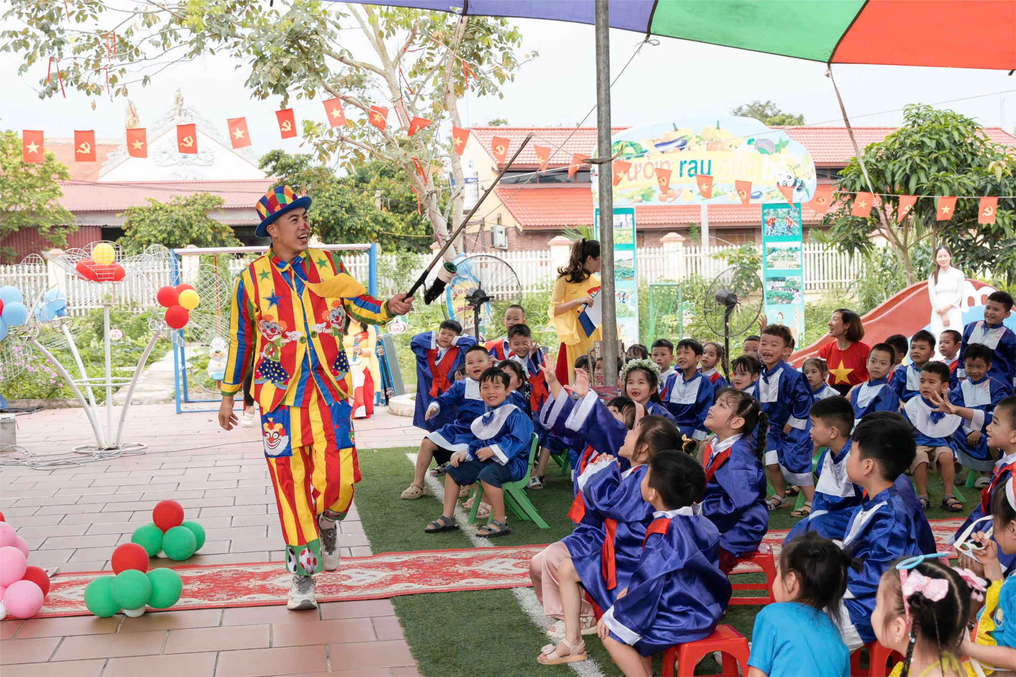 Sau đây là một số hình ảnh các bé trường Mầm non An Tiến vui thích khi được xem màn biểu diễn của chú Hề.
