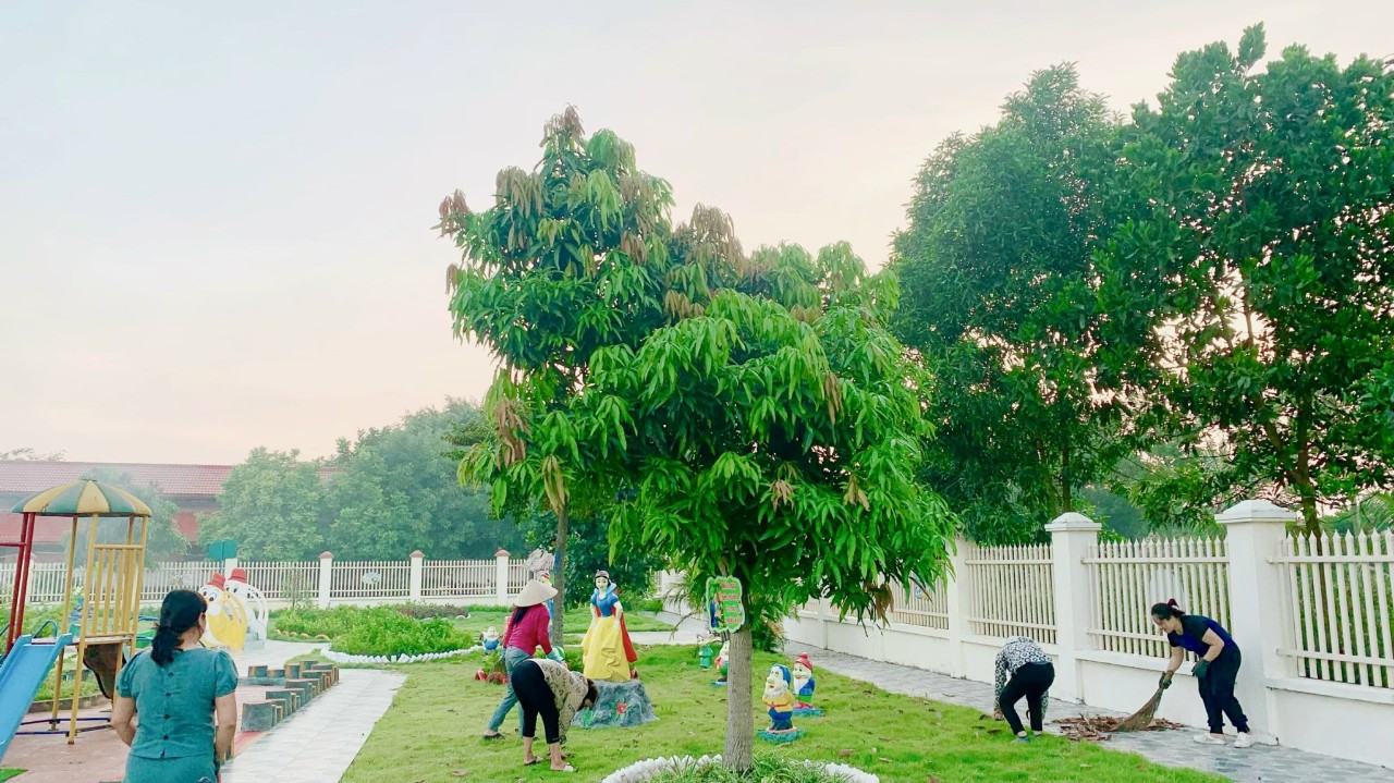 CÔNG TÁC LAO ĐỘNG TỔNG VỆ SINH CHUẨN BỊ ĐÓN CHÀO NĂM HỌC MỚI 2023-2024, CỦA TRƯỜNG MẦM NON AN TIẾN