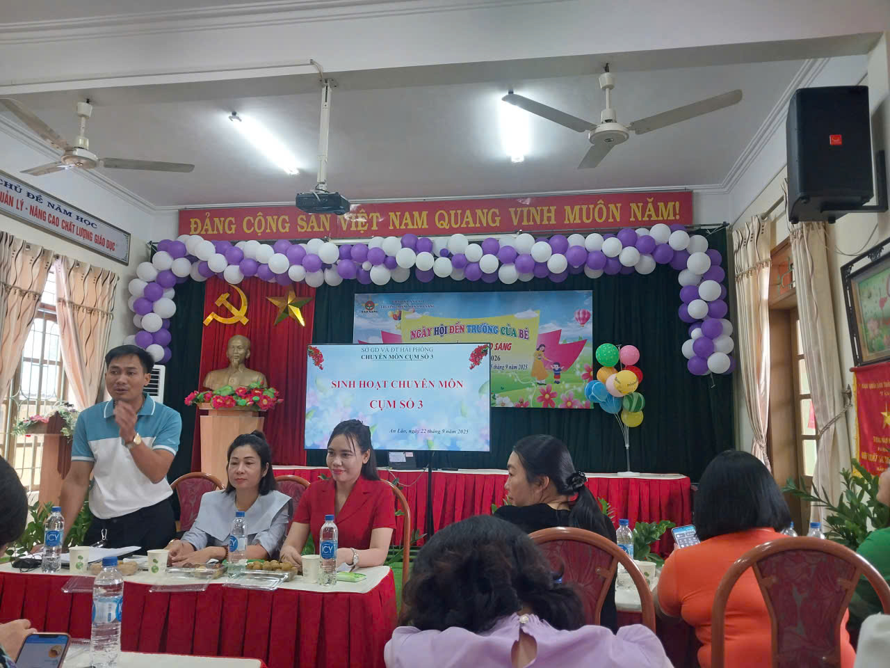 🍀Trong buổi sinh hoạt chuyên môn của Cụm trường Mầm non số 3, các đơn vị đã tập trung vào những nội dung trọng tâm gồm: Triển khai Kế hoạch hoạt động Cụm năm học 2025-2026; phân công nhiệm vụ cụ thể cho nhóm trưởng, nhóm phó và các thành viên; thảo luận, chia sẻ về công tác xây dựng nội dung và lịch SHCM cụm Số 3, đồng thời cùng nhau trao đổi, tháo gỡ khó khăn và hỗ trợ chuyên môn nhằm nâng cao chất lượng hoạt động chung của toàn Cụm. Thống nhất chọn trường MN Sao Sáng đại diệm Cụm trường Số 3 đăng ký chuyên đề cấp TP với chủ đề: “Một ngày làm bác nông dân của bé”; Trường MN An Tiến tổ chức chuyên đề SHCM cấp cụm với nội dung: “ Tổ chức các trò chơi dân gian cho trẻ tại trường MN”