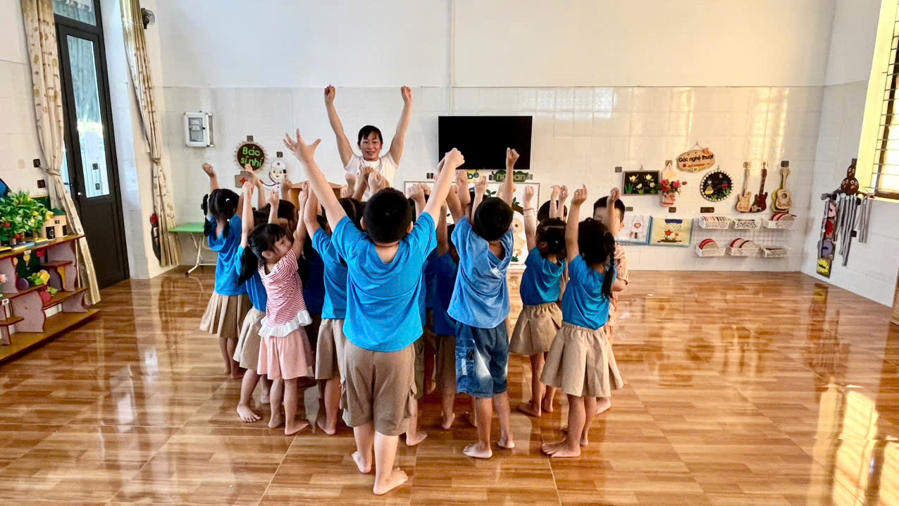 Nhận thức được tầm quan trọng của thể dục sáng đối với trẻ, giáo viên lớp 5A3 luôn tổ chức thực hiện và duy trì tốt hoạt động thể dục sáng cho trẻ bằng nhiều hình thức phong phú, đa dạng như đồng diễn, thể dục theo nhạc phù hợp với chủ đề thực hiện chương trình, giúp trẻ hứng thú luyện tập. Việc duy trì thể dục sáng toàn trường đã hình thành ở trẻ một thói quen, trẻ chủ động thực hiện và xem như một hoạt động không thể thiếu mỗi ngày đến trường của trẻ.