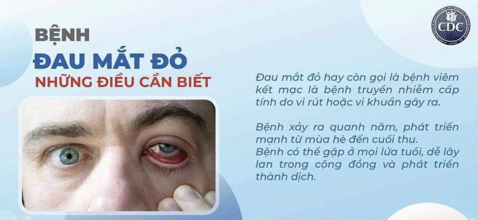Bệnh đau mắt đỏ hay còn được gọi là bệnh viêm kết mạc là một bệnh lý về mắt gây nhiễm trùng mắt do virus, vi khuẩn. Người mắc bệnh sẽ bị đỏ mắt, sưng, ngứa và đau, chảy nước mắt và rất dễ lây lan từ người này qua người khác. Đặc biệt mùa hè là thời điểm bùng phát của dịch đau mắt đỏ và ai cũng có thể mắc bệnh này, từ người già cho tới trẻ nhỏ. Cơ thể người không tự tạo ra được khả năng miễn dịch với bệnh đau mắt đỏ, thế nên con người có thể bị đau mắt đỏ nhiều lần.