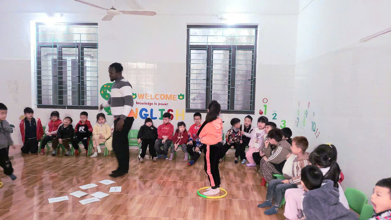 Căn cứ vào nguyện vọng cho trẻ làm quen với tiếng anh của phụ huynh học sinh. Trường mầm non An Tiến tổ chức cho trẻ làm quen với tiếng Anh từ tháng 10/2023. Để thực hiện tốt việc cho trẻ làm quen với tiếng Anh nhà trường đã đầu tư cở vật chất ở 2 điểm trường đều có phòng tiếng Anh, có tivi thông minh, kết nối mạng internet… Giúp giáo viên tiếng Anh và trẻ có điều kiện giảng dạy và học tập tốt nhất.Với mục đích giúp trẻ mạnh dạn, tự tin hứng thú với việc học tiếng Anh của các bậc học tiếp theo, nâng cao nhận thức khi làm quen với ngôn ngữ mới và đạt được các mục tiêu cụ thể như: Trẻ hiểu biết đơn giản về thế giới xung quanh bằng tiếng Anh, biết sử dụng từ đơn 1 âm tiết dễ phát âm theo một số chủ đề gần gũi xung quanh trẻ như: trường học, tên gọi, nghề nghiệp, con vật, số đếm, chữ cái, màu sắc, cây cối, đồ chơi, hoa quả…Trẻ biết cách sử dụng một số câu đơn giản như: chào hỏi, tên tuổi, xin lỗi, cảm ơn…Trẻ biết hát theo và hát bài hát đơn giản phù hợp với lứa tuổi; biết diễn đạt ý thích, biểu lộ cảm xúc qua ngôn ngữ; hình thành và phát triển năng lực giao tiếp bằng tiếng Anh qua kỹ năng nghe nói; hình thành thói quen thích học tiếng Anh một cách tự nhiên và có hiệu quả. Năm học 2024 - 2025 trường mầm non An Tiến tiếp tục cho trẻ được làm quen với tiếng Anh 2 tiết/tuần, chương trình phù hợp với từng độ tuổi theo nội dung của Bộ GD&ĐT. Nhà trường đã hợp đồng 2 giáo viên tiếng anh có trình độ tiếng Anh, có kỹ năng sư phạm hướng dẫn trẻ mầm non. Bằng phương pháp nhẹ nhàng thoải mái trẻ được “Học bằng chơi, chơi bằng học” thông qua các bài hát, trò chơi, tranh ảnh, cách phát âm…. Những giờ làm quen tiếng Anh luôn mang đến cho trẻ niềm vui hứng thú, những tiếng cười sảng khoái, từ đó trẻ có thể tiếp cận với ngôn ngữ mới được nhanh hơn và dễ nhớ hơn. Một số hình ảnh trẻ làm quen với tiếng Anh