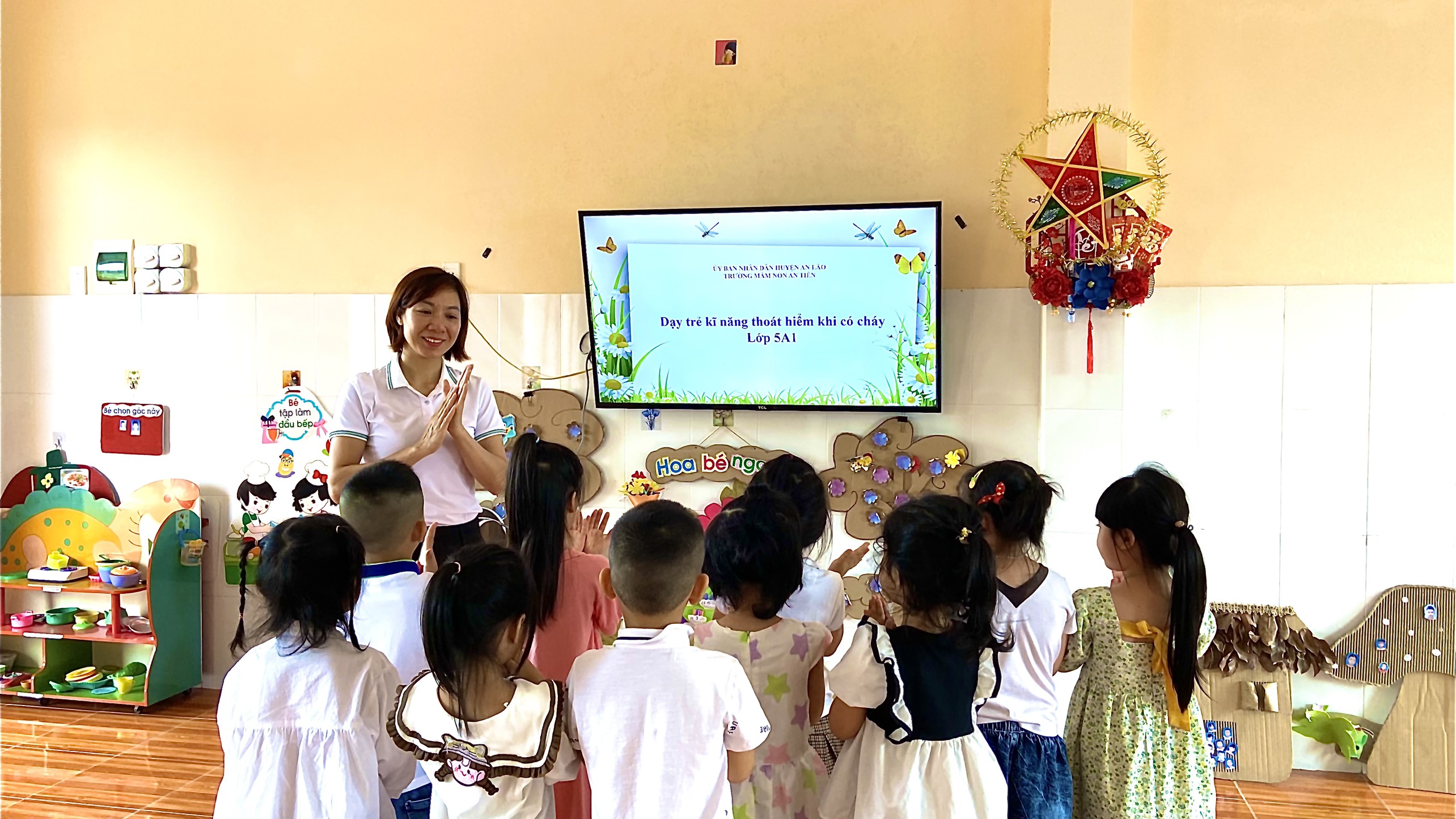 Hiểu được điều đó, ngày 16/9/2023, các cô giáo khối 5T đã tổ chức hoạt động "Dạy trẻ kĩ năng thoát hiểm khi có cháy". Thông qua hoạt động, trẻ được dạy cách nhận diện đám cháy, các nguy cơ gây ra cháy và 1 số kĩ năng thoát hiểm khi có cháy. Hoạt động được tổ chức thành công, trẻ hứng thú, tích cực hoạt động và đã có những kĩ năng cơ bản khi có cháy xảy ra.