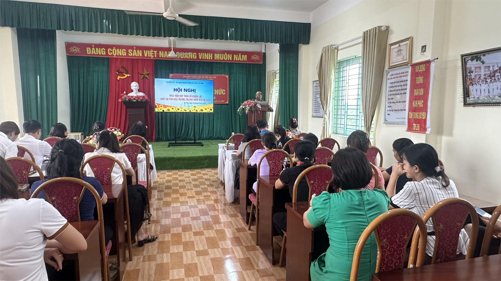 Chiều ngày 14/8/2024 trường mầm non An Tiến tổ chức hội nghị lấy phiếu tín nhiệm bổ nhiệm lại chức vụ Phó hiệu trưởng đối với đồng chí Phú Thị Minh Lệ. Hội nghị thực hiện quy trình bổ nhiệm lại chức vụ Phó hiệu trưởng trường mầm non An Tiến đã diễn ra trong không khí trang trọng, khẩn trương và nghiêm túc.