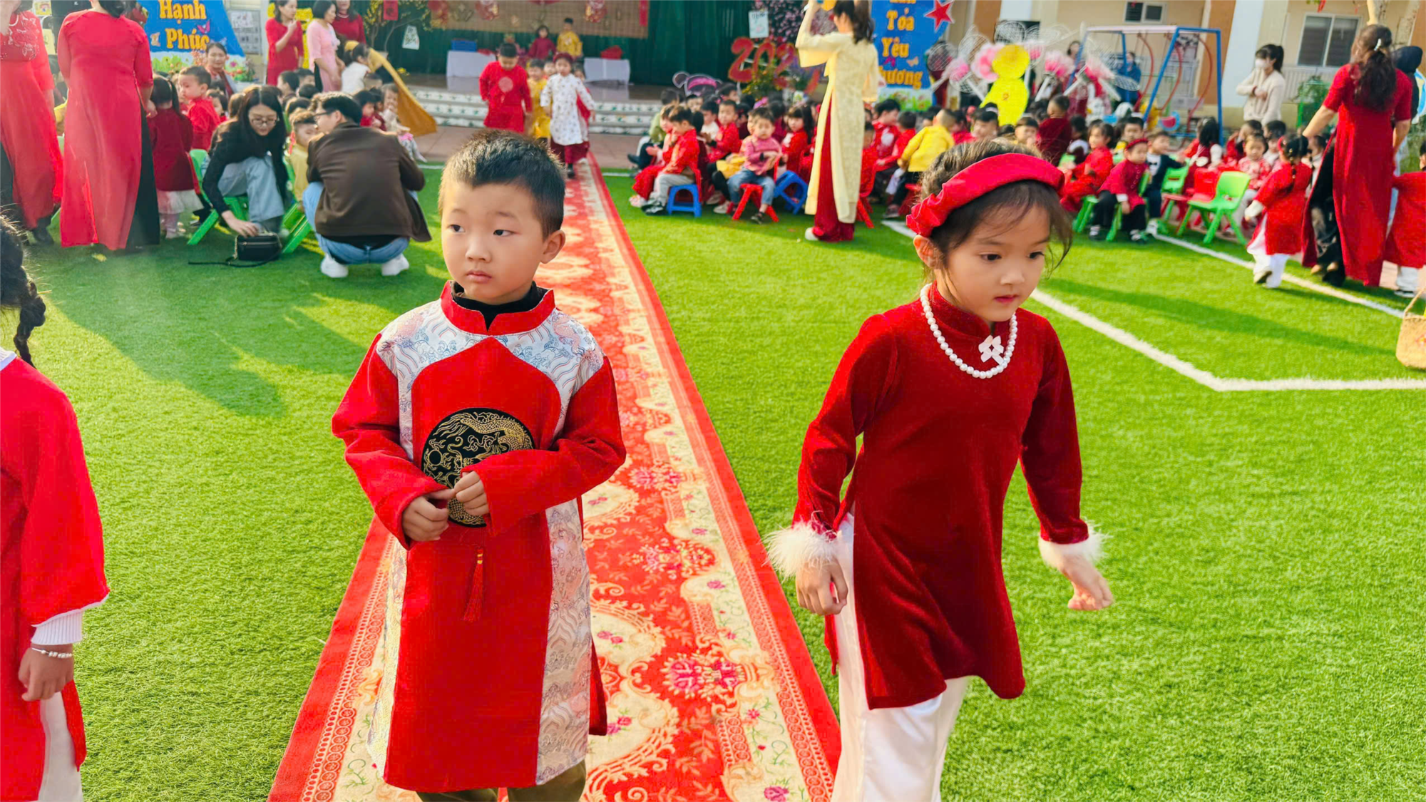 Không khí vui đón tết của trường mầm non An Tiến lại nhộn nhịp, tưng bừng, tràn đầy ấm áp, yêu thương. Khuôn viên trường học đã rực rỡ sắc xuân đang khoác trên mình một bộ cánh mới.