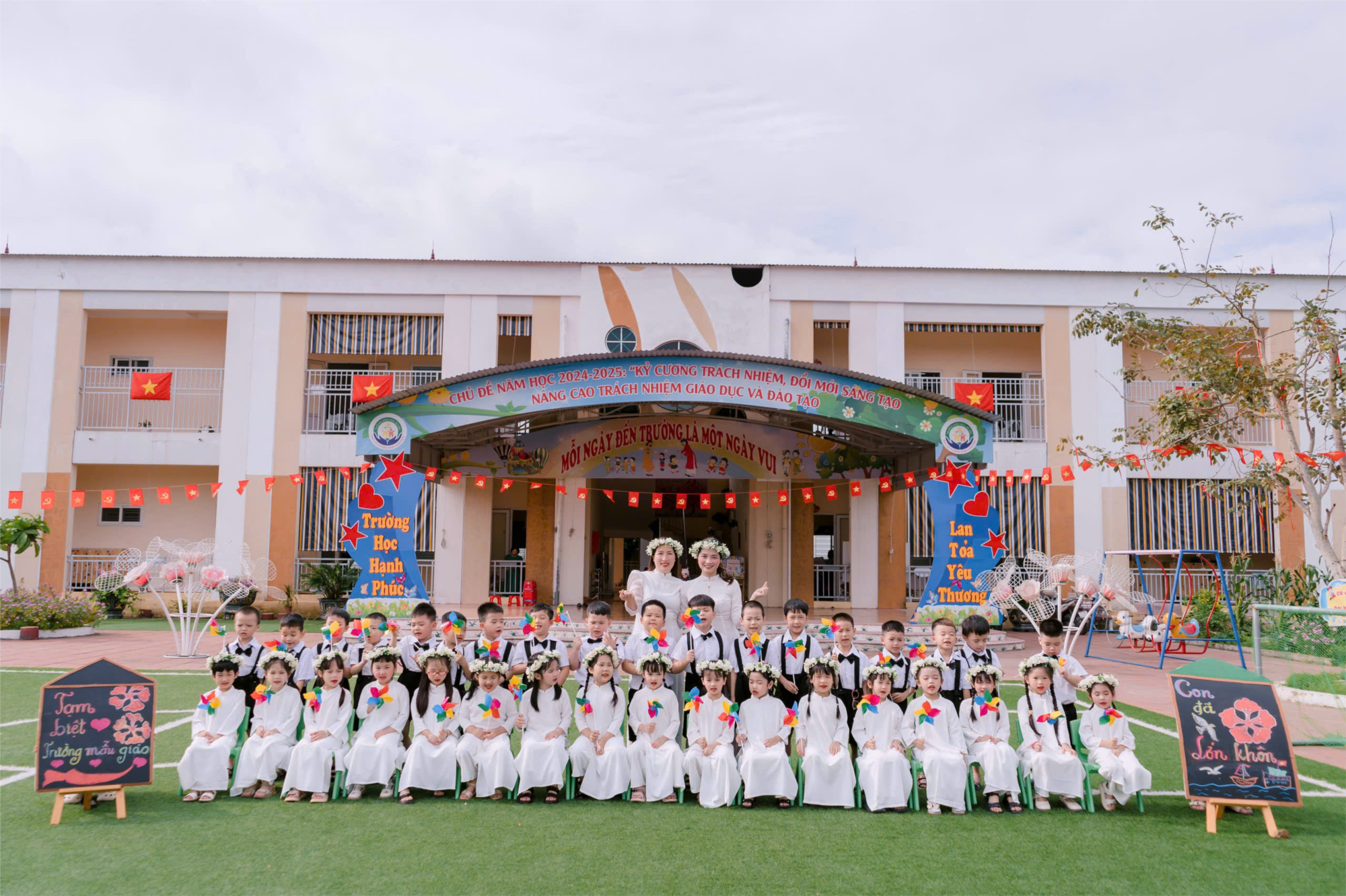 Ngày hôm đó, có lẽ không ai quên được những tiếng cười rộn ràng, những ánh mắt lấp lánh vui mừng, và những cái ôm thật chặt. Mỗi bức ảnh là một câu chuyện riêng biệt, mỗi nụ cười là một biểu hiện của sự thân thiết, của tình bạn chân thành. Những bức ảnh kỷ yếu không chỉ là kỷ niệm của các con, mà còn là minh chứng cho những nỗ lực, sự cố gắng và những niềm vui mà cả lớp đã cùng nhau trải qua.