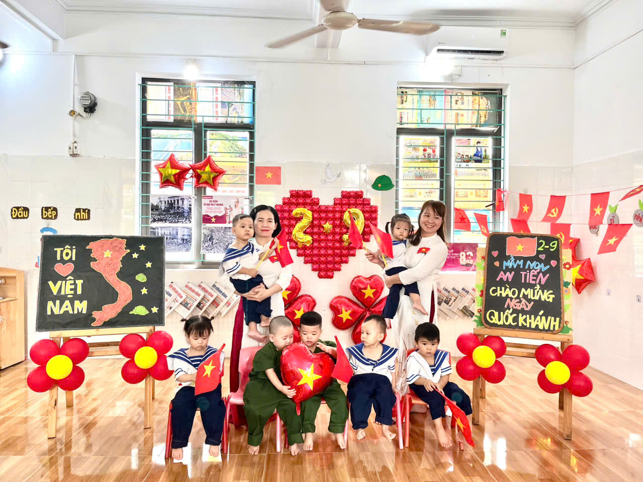 Trong không khí hào hùng của mùa thu lịch sử, cả nước tưng bừng chào mừng kỉ niệm 80 năm Cách mạng Tháng Tám và Quốc khánh 2/9. Cô và trò lớp NT2 trường Mầm non An Tiến cũng đang hướng về ngày đại lễ của dân tộc bằng những cảm xúc thiêng liêng, xúc động, niềm tin kiêu hãnh và lòng tự hào dân tộc .Với mong muốn mang đến cho trẻ vốn hiểu biết về không gian văn hóa và hưởng ứng ngày đại lễ lớn của dân tộc Việt Nam ngay từ khi còn nhỏ. Cô và trò lớp NT2 trường Mầm non An Tiến đã tổ chức, và hưởng ứng rất nhiều hoạt động có ý nghĩa để giáo dục lòng tự hào về truyền thống vẻ vang của ông cha ta. Truyền lại cho các con lòng yêu nước, sự biết ơn thế hệ cha ông đã anh dũng hy sinh để đất nước có được hoà bình, hạnh phúc, ấm no.