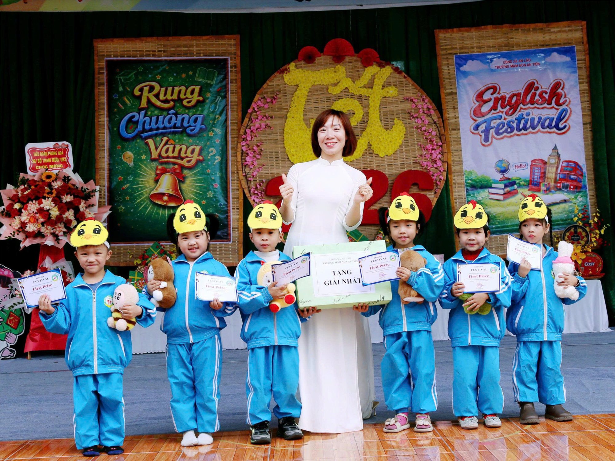 Tạo sân chơi thiết thực, bổ ích, đồng thời là dịp để giao lưu, sinh hoạt, vui chơi, rèn luyện tính tập thể, tính tổ chức, thể hiện sự mạnh dạn, tự tin đứng trước đám đông bằng tiếng Anh. Chiều ngày 04/02/2026 trường mầm non An Tiến đã tổ chức cuộc thi Festival tiếng Anh cấp trường. Các bé lớp 5A3 đã rất hào hứng, tích cực tham gia vào các phần thi: