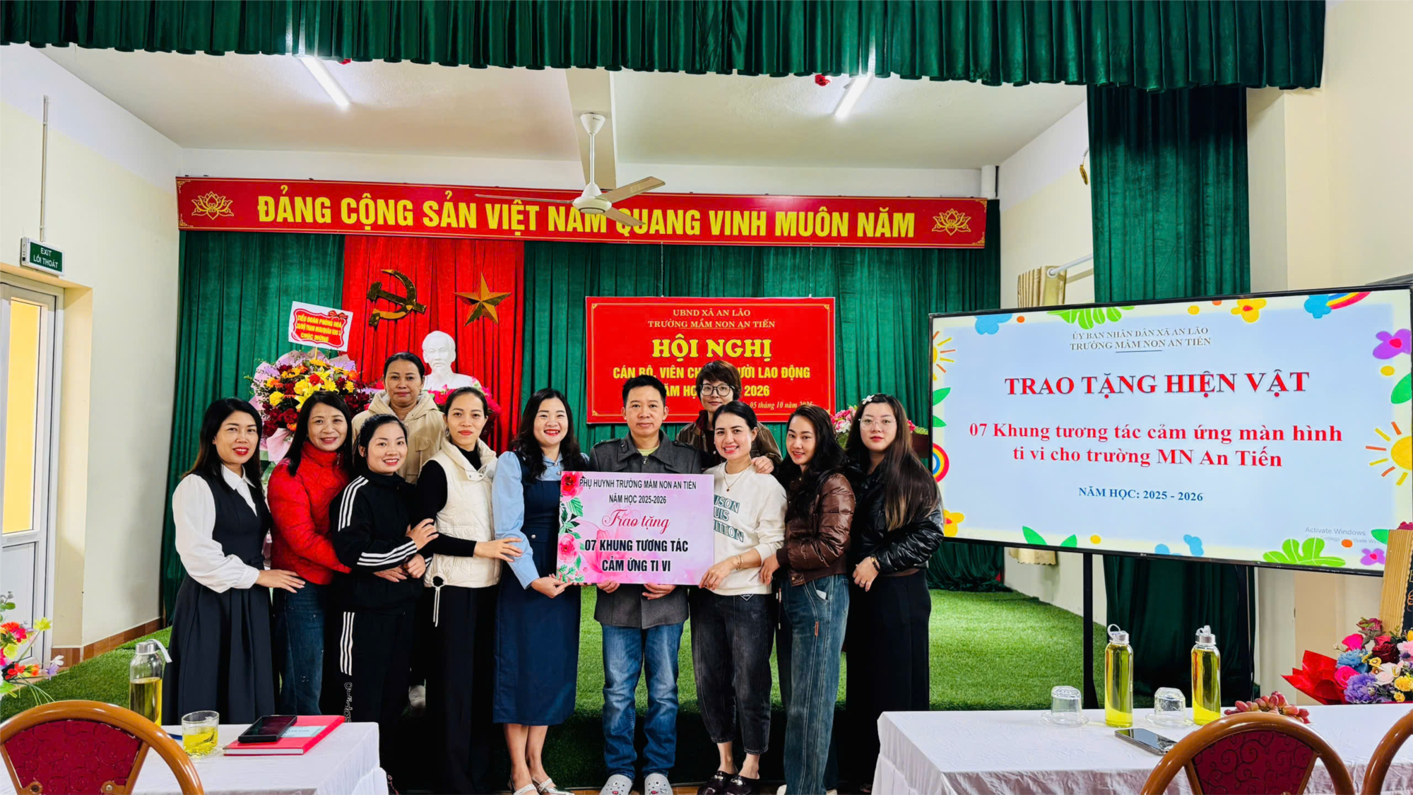 Thay mặt Ban giám hiệu và tập thể cán bộ, giáo viên, nhân viên Trường Mầm non An Tiến, xin được gửi tới quý bậc phụ huynh lời cảm ơn chân thành và sâu sắc nhất. Nhà trường trân trọng ghi nhận và biết ơn sự đồng hành, sẻ chia và ủng hộ nhiệt tình của quý phụ huynh trong thời gian qua, đặc biệt là sự chung tay đóng góp để nhà trường xã hội hóa thành công 7 màn hình tivi thông minh phục vụ hoạt động dạy – học. Đây là nguồn động viên to lớn giúp nhà trường nâng cao chất lượng giáo dục, đẩy mạnh ứng dụng AI và chuyển đổi số, tạo môi trường học tập hiện đại, thân thiện và giàu trải nghiệm cho các con.