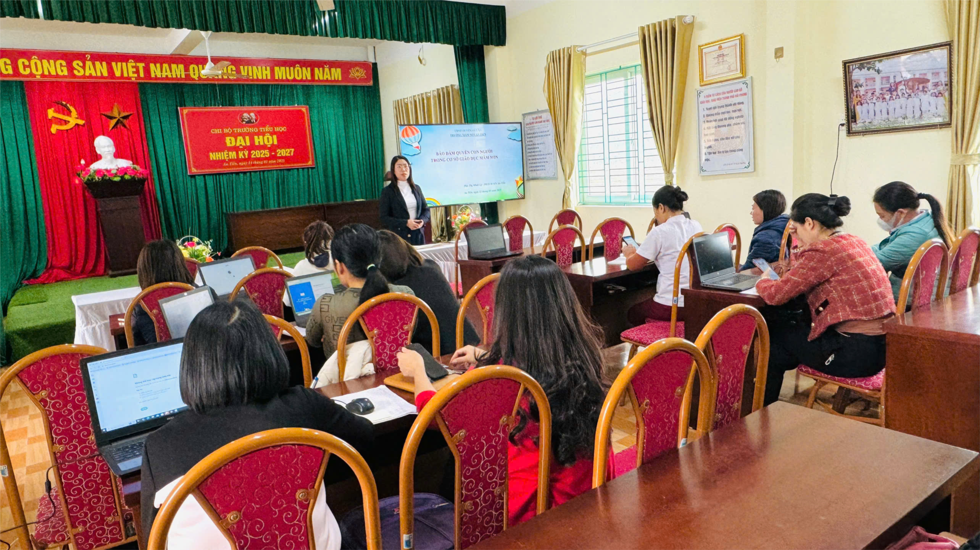 Học kì II, năm học 2024 - 2025 tập thể cán bộ, giáo viên, nhân viên trường mầm non An Tiến tiếp tục phát huy thực hiện hiệu quả kế hoạch nhiệm vụ năm học, nâng cao chất lượng chăm sóc nuôi dưỡng giáo dục trẻ, phối kết hợp với phụ huynh thực hiện tốt quyền trẻ em để mỗi trẻ em đều được đối xử công bằng và được hưởng quyền và lợi ích chính đáng nhất