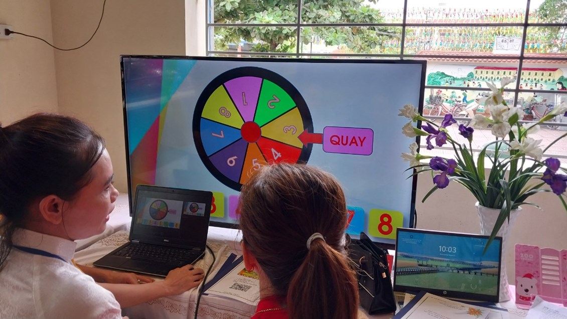Thực hiện sự chỉ đạo của Phòng giáo dục, nhà trường phát động cuộc thi “Xây dựng thiết bị dạy học số” tới toàn thể giáo viên trong nhà trường. Khuyến khích, động viên, tạo điều kiện thuận lợi để giáo viên tham gia cuộc thi. Ban giám hiệu và tổ chuyên môn đã lựa chọn những sản phẩm chất lượng, tiêu biểu của trường để tham gia cuộc thi cấp huyện. Tham gia cuộc thi giúp tăng cường ứng dụng công nghệ thông tin trong hoạt động dạy - học, góp phần thúc đẩy chuyển đổi số trong lĩnh vực giáo dục theo đúng mục tiêu của chương trình chuyển đổi số của huyện và ngành Giáo dục đào tạo. Nhà trường có 2 sản phẩm tham gia dự thi: Sản phẩm “Trò chơi vòng quay kì diều” của cô giáo Nguyễn Thị Lan và “ Bé tìm hiểu môi trường ” của cô giáo Vũ Thị Hậu. Nhà trường đã đạt giải ba cấp huyện.