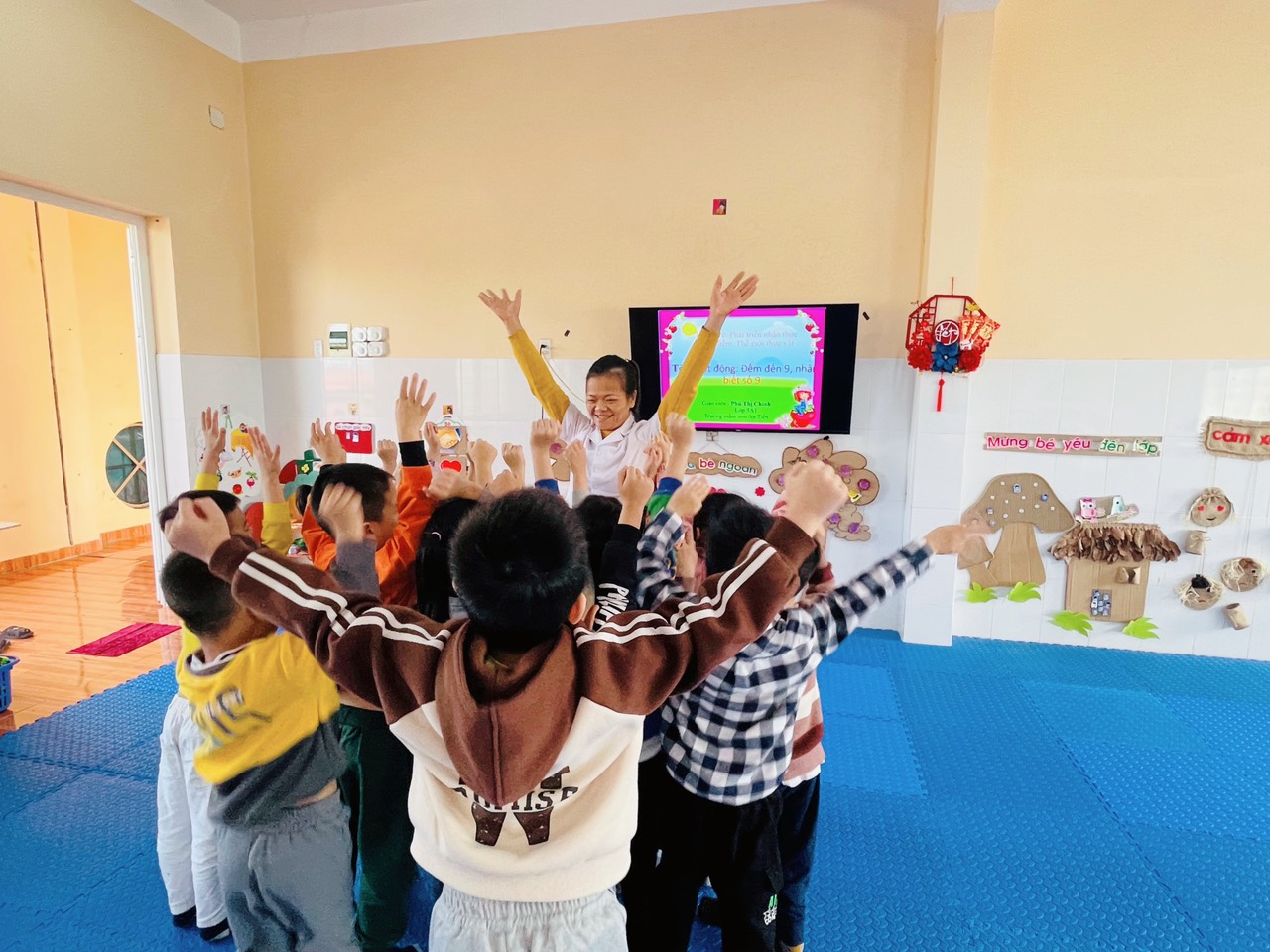 Với tầm quan trọng như vậy vừa qua tôi đã tổ chức giờ học phát triển nhận thức cho trẻ 5 tuổi A1 lớp tôi, hoạt động làm quen với toán với đề tài “Đếm đến 9, nhận biết số 9, thêm bớt trong phạm vi 9”, học sinh lớp tôi vô cùng hứng thú và tích cực học tập.